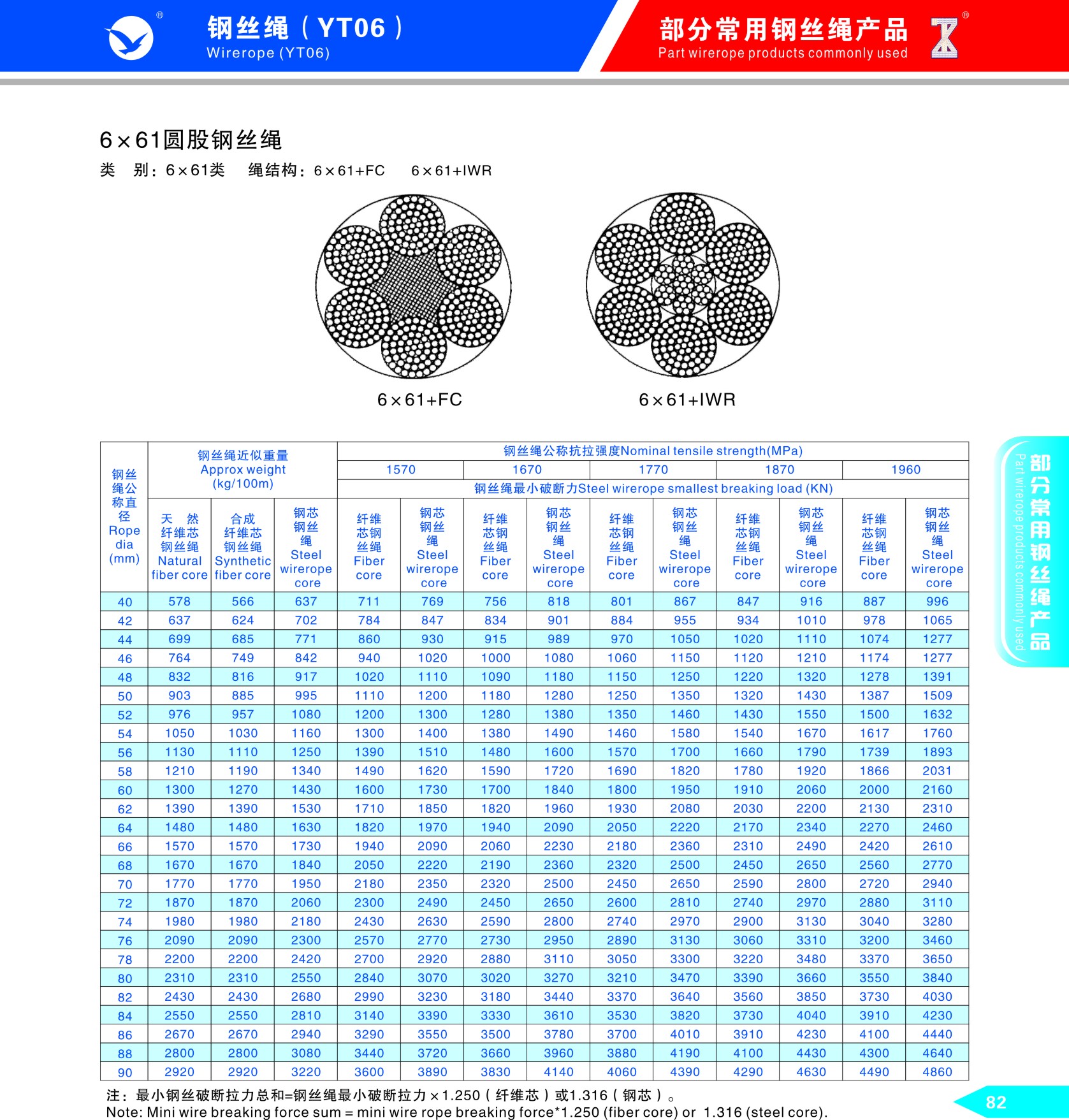 部分常用鋼絲繩產(chǎn)品